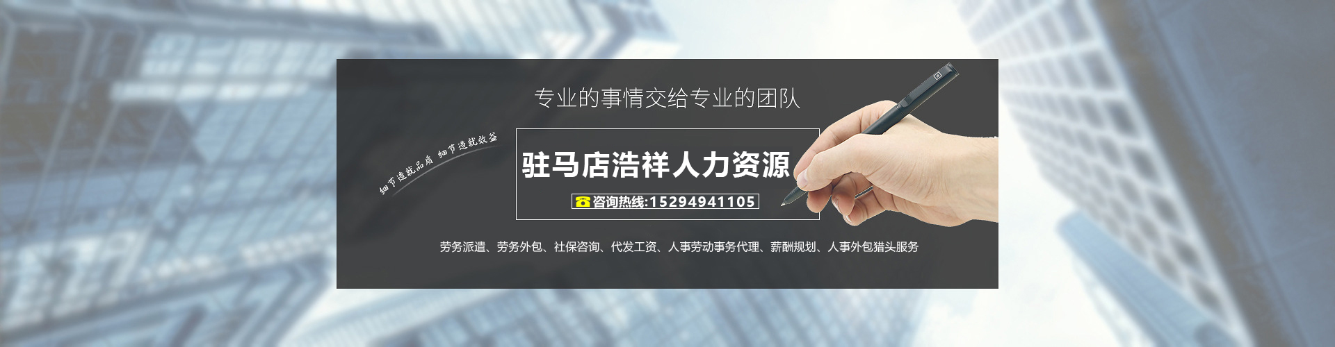 駐馬店市浩祥人力資源有限公司是一家專(zhuān)注于高端人才推薦、專(zhuān)業(yè)技能人才挖掘、優(yōu)秀人才輸送、基層員工培養(yǎng)(職業(yè)化培訓(xùn))、人事代理、工資與薪酬服務(wù)、勞務(wù)派遣、福利保險(xiǎn)、勞動(dòng)關(guān)系管理的全方位、多層次、綜合性人力資源有限公司。